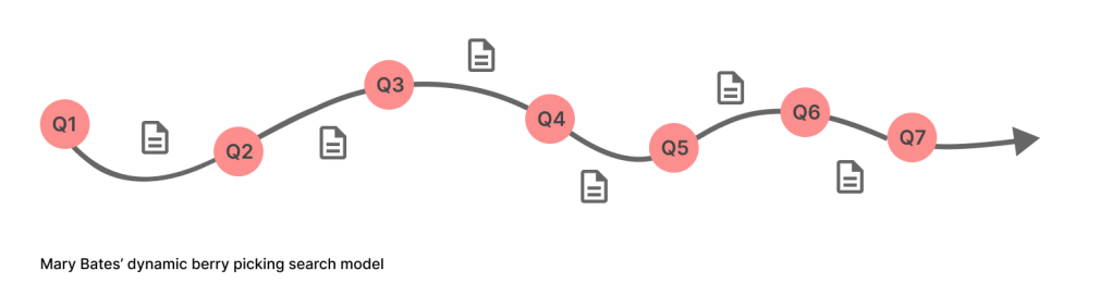 The Library’s search mechanisms were set up for information retrieval that relied on the user entering good input terms then interpreting the result set. Advanced users could navigate the process quite well but novice users struggled mainly due to lack of domain. Participants in user testing displayed search behaviours closely aligned to ‘berry picking’, where broad tentative searches led users to redefining the keywords or jumping into content that then triggered a new search based on terms presented and new knowledge gained. This pattern also conformed to Wurman’s first law which states: “You only understand something relative to something you understand. So you have to begin someplace. You have to get in. You have to open the door to some kind of understanding in people to go to the next step”.