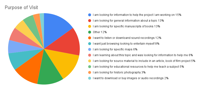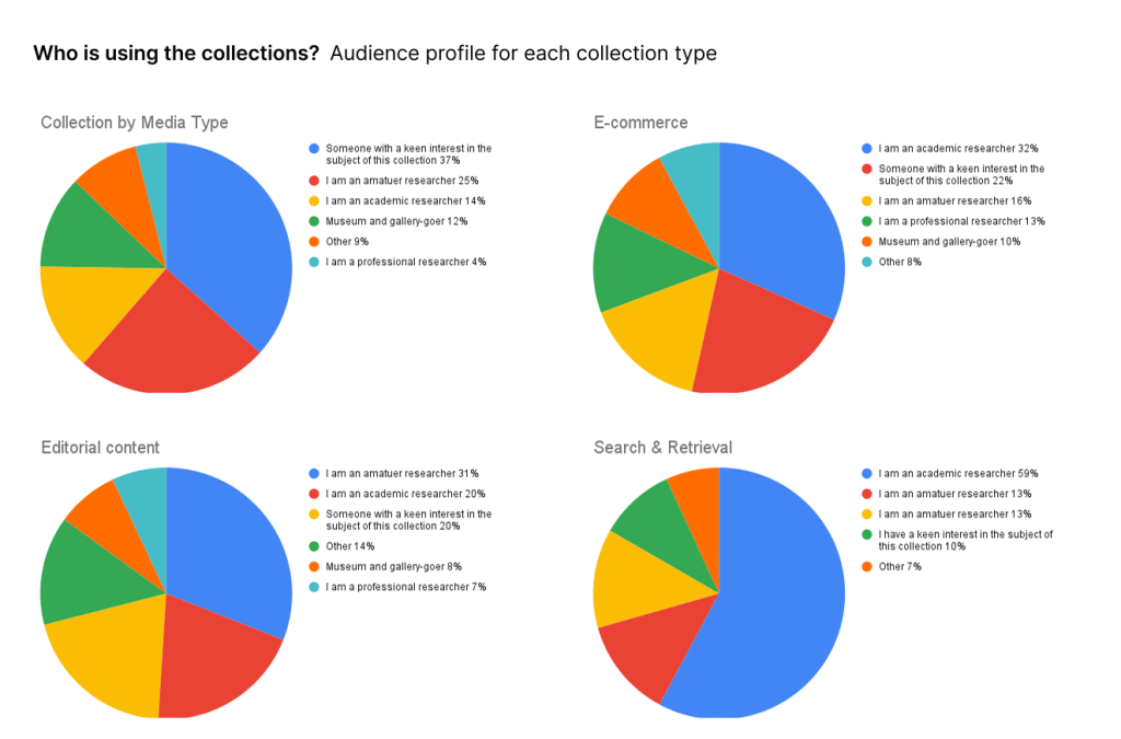A data analytics review of the different digital collections areas was undertaken and exit surveys were integrated across the different parts of the website. The key questions I wanted to understand were: