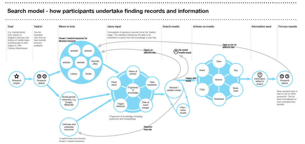 A number of 1:1 user testing sessions were conducted with participants that matched the profiles identified from the survey on the website and were carrying out research that required primary source material and could be support via the Library’s website. The tasks explored a variety of digital collections, help content and exploration of the website via the homepage.