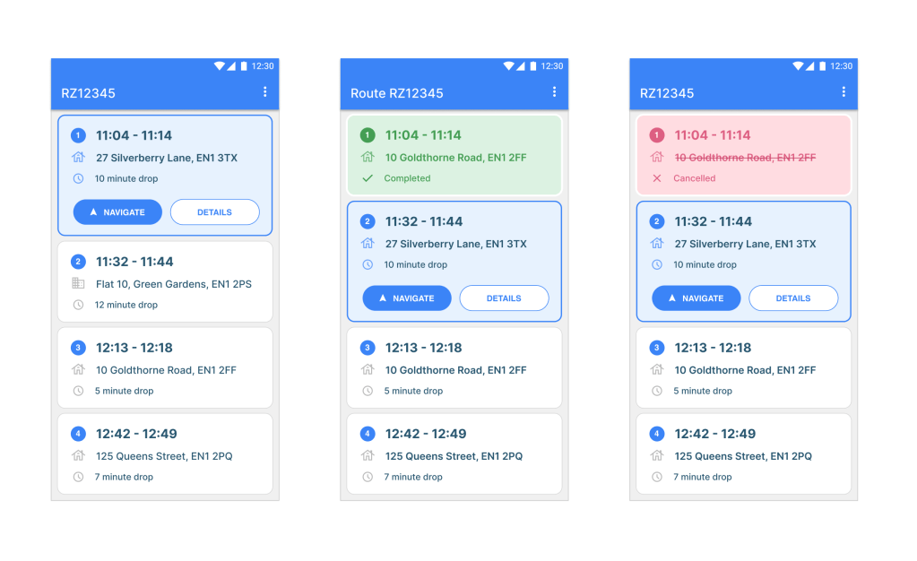 - Integrated route information: The new app provided all the key drop information up front to the Driver which meant that the printed route summary was not needed unless there was a technical issue. Drivers commented on improved efficiency and simplicity of viewing and editing the Delivery notes. The accuracy and usefulness of the notes were also improved as more Drivers updated the information.